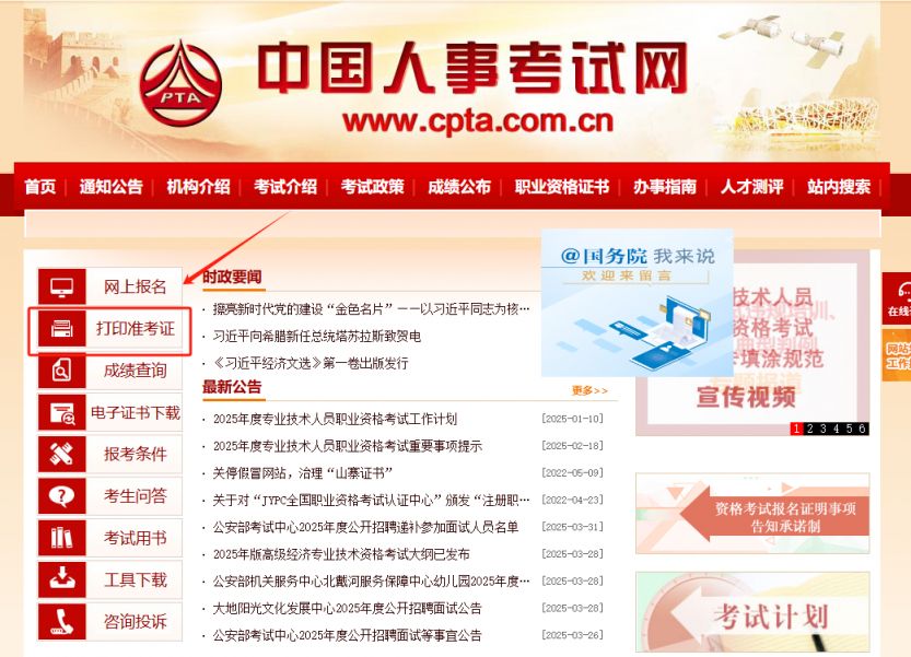 1. 中国人事考试网(http://www.cpta.com.cn/):该网站是官方考试信息发布平台,考生可在此查询准考证打印信息。 2. 各省人事考试网:各省人事考试网会发布本省的考试信息,包括准考证打印时间及入口。