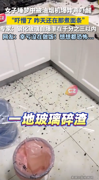 眼前的一幕让她整个人愣住了:家里用了多年的油烟机,玻璃面板彻底炸裂,碎片溅得到处都是,地上、灶台上一片狼藉。